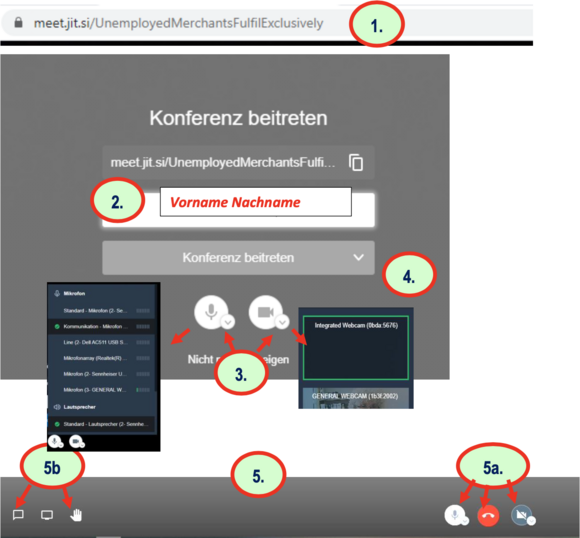 a. Mikrofon oder Kamera ein- und ausschalten, Meeting verlassen