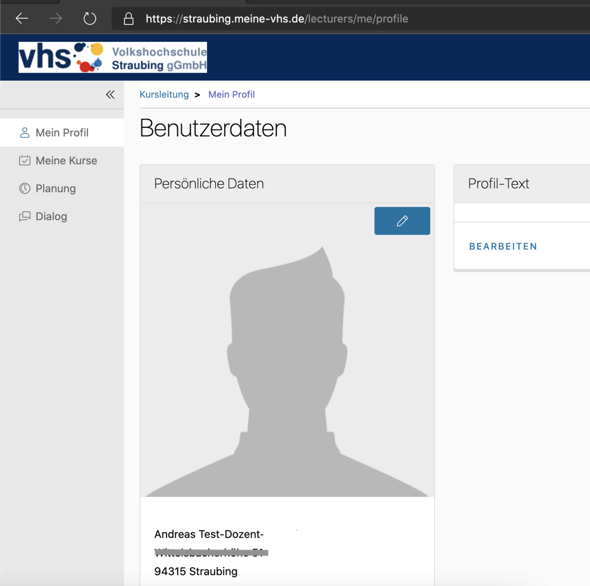 Sie können hier sofort ein Bild von sich hinterlegen/ändern, das dann bei Ihren Kursen unter www.vhs-Straubing.de angezeigt wird.