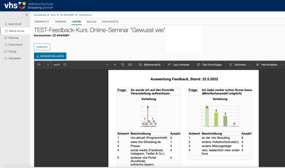 Hier können Sie einfach "durchblättern" und schauen, was Ihre Teilnhmer:innen anonym so geantwortet haben - mit dem Button "Herunterladen" erhalten Sie mehrseitiges PDF.