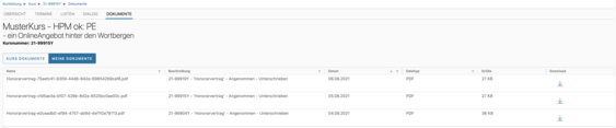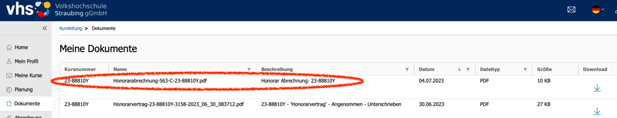 Sobald die Honorar-Abrechnung für einen Kurs durch die VHS-Verwaltung freigegeben ist, erhalten Sie ein Mail und der Kurs erscheint hier in der Übersicht.