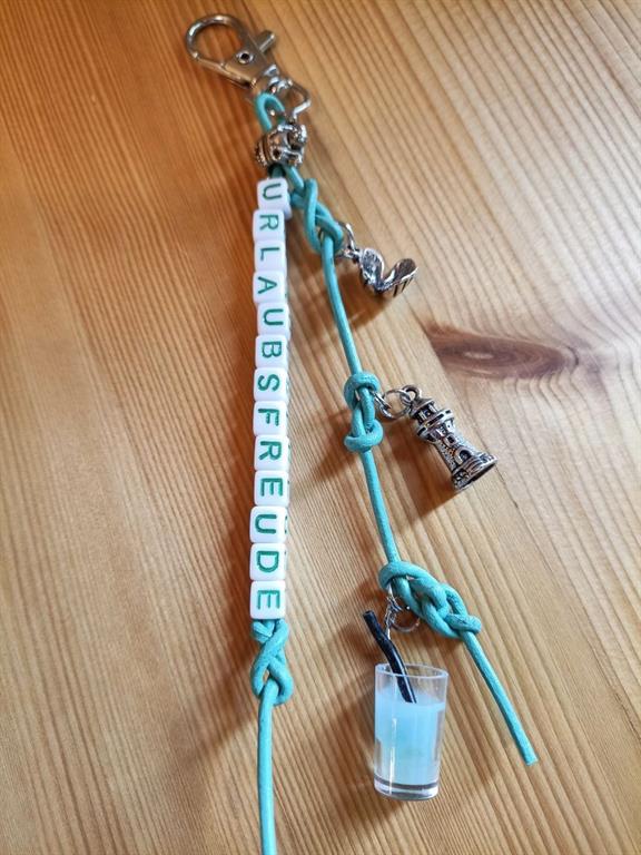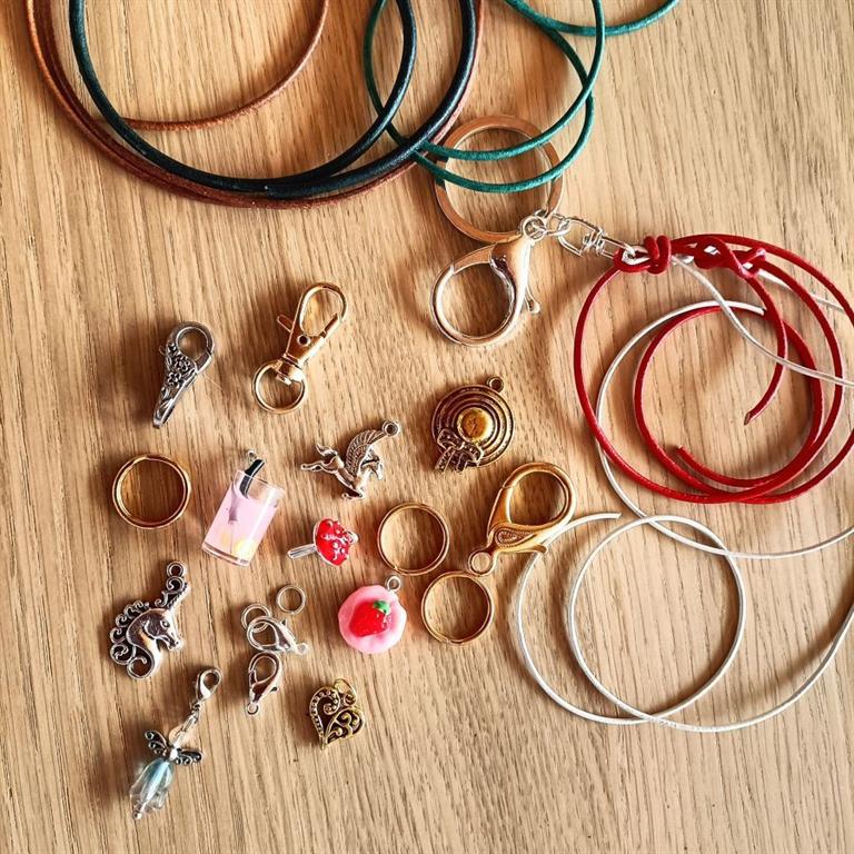 So entsteht an diesem Nachmittag ein individuelles Armband (mit Namen oder Motto und Charms), ein Schlüsselanhänger (mit Lederschnur, Spruch und Charms) und wer geschickt ist, schafft sogar noch eine eigene Kette.