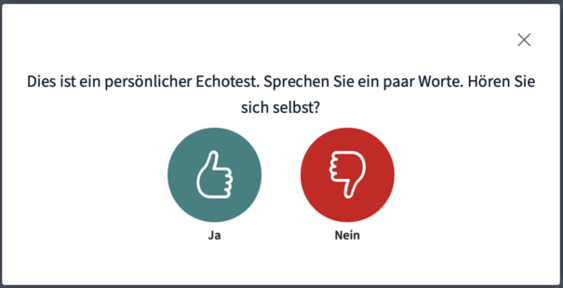 Geben Sie das Mikrofon frei, erfolgt ein Echotest. Hören Sie sich hier nicht selbst, klicken Sie unbedingt auf „Nein“.