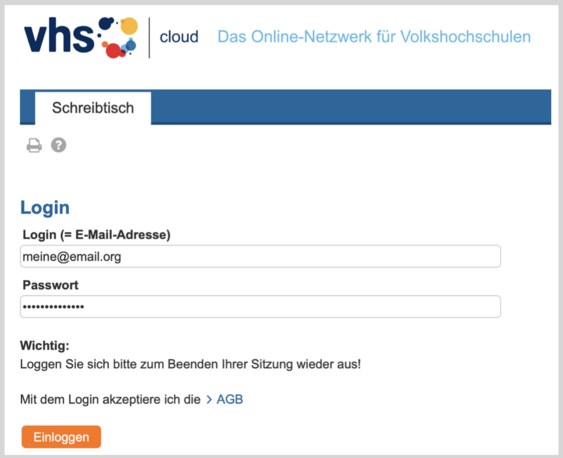 1. Schritt - Login/Anmeldung in der vhs.cloud