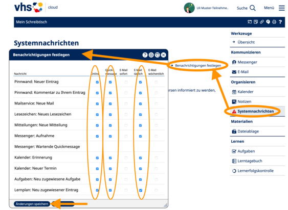 falls Sie mit der vhs.cloud-App auf einem mobilen Gerät arbeiten: alle Häkchen bei „Push“ setzen - dann erhalten Sie eine Push-Benachrichtigung direkt auf dem Handy