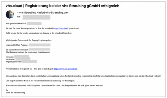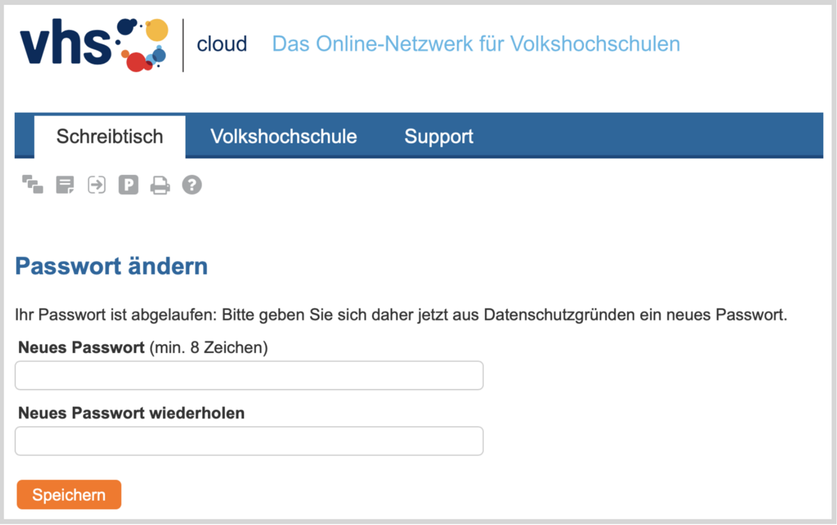 Aus Datenschutzgründen erhalten Sie in der Grundeinstellung aus der vhs.cloud nach der ersten Passwort-Benachrichtigung keine weitere Mail mehr!