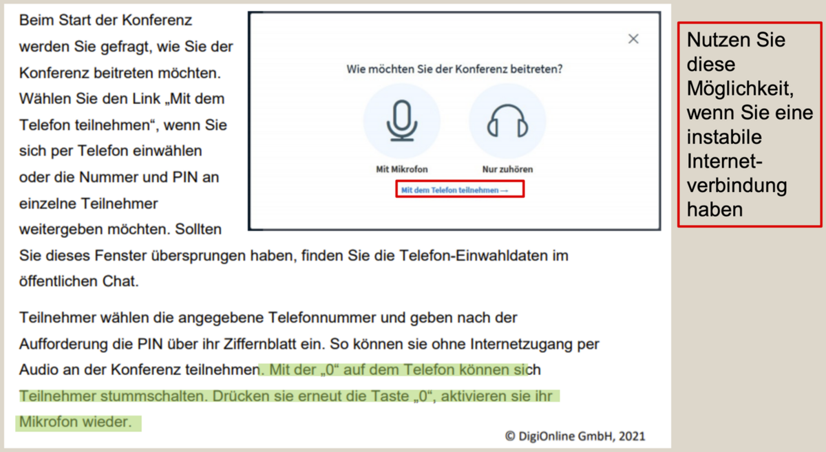 - oder mit einem anderen Gerät (z.B. Smartphone) teilnehmen