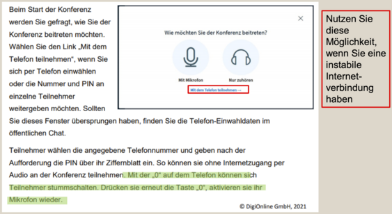 Vor jedem Start jeder BBB-Web-Konferenz wird ein kurzer Mikrofon-Check durchgeführt (daher immer etwas Zeit einplanen) - notfalls kann auch per Telefon teilgenommen werden.