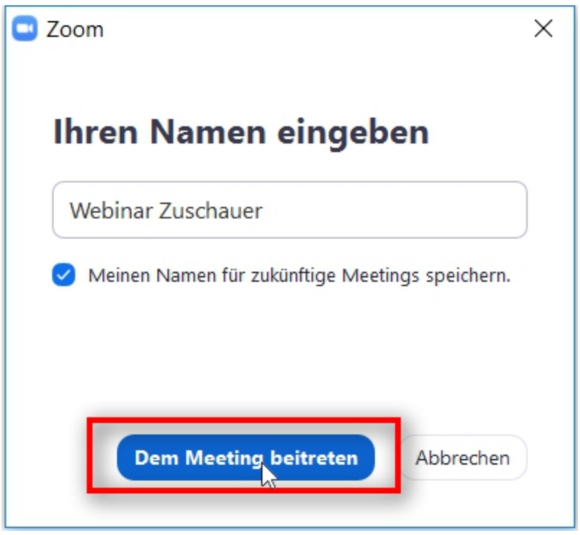 Klicken Sie abschließend auf den Button "Dem Meeting beitreten".